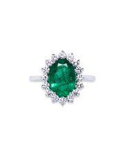 Anel esmeralda central de 3cts e diamantes de 4pts (0,78cts). Ouro 18k.
