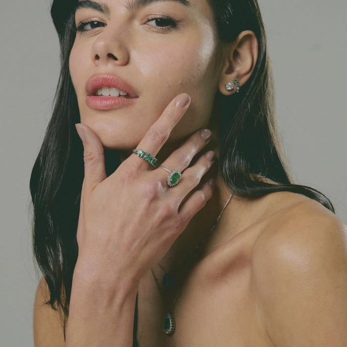 Informar quando este item estiver disponível Anel Esmeralda com diamantes