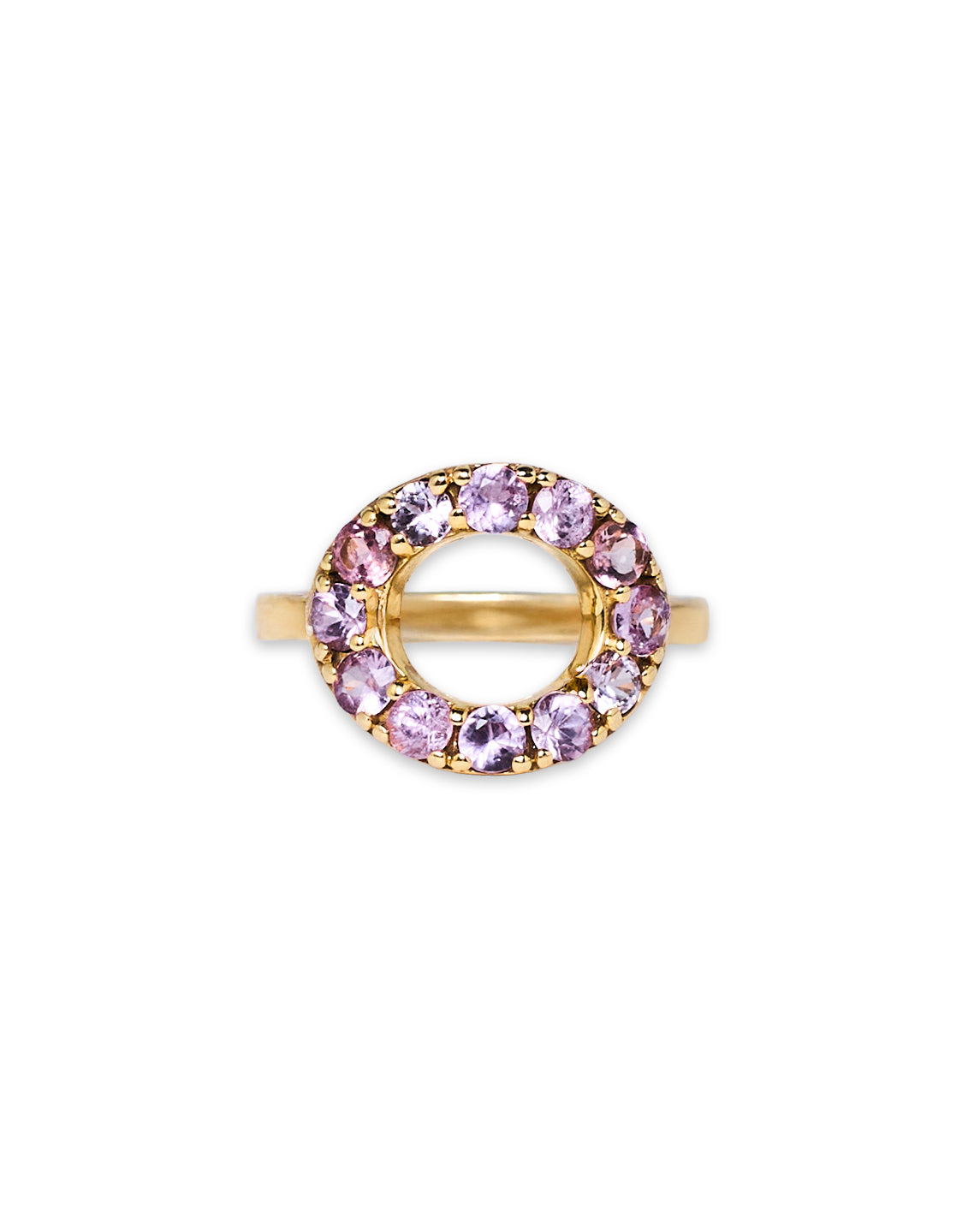 Anel modelo Moon mini, com safiras rosas.Anel para dedo mingo.Ouro 18k.