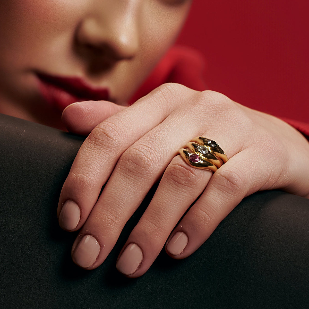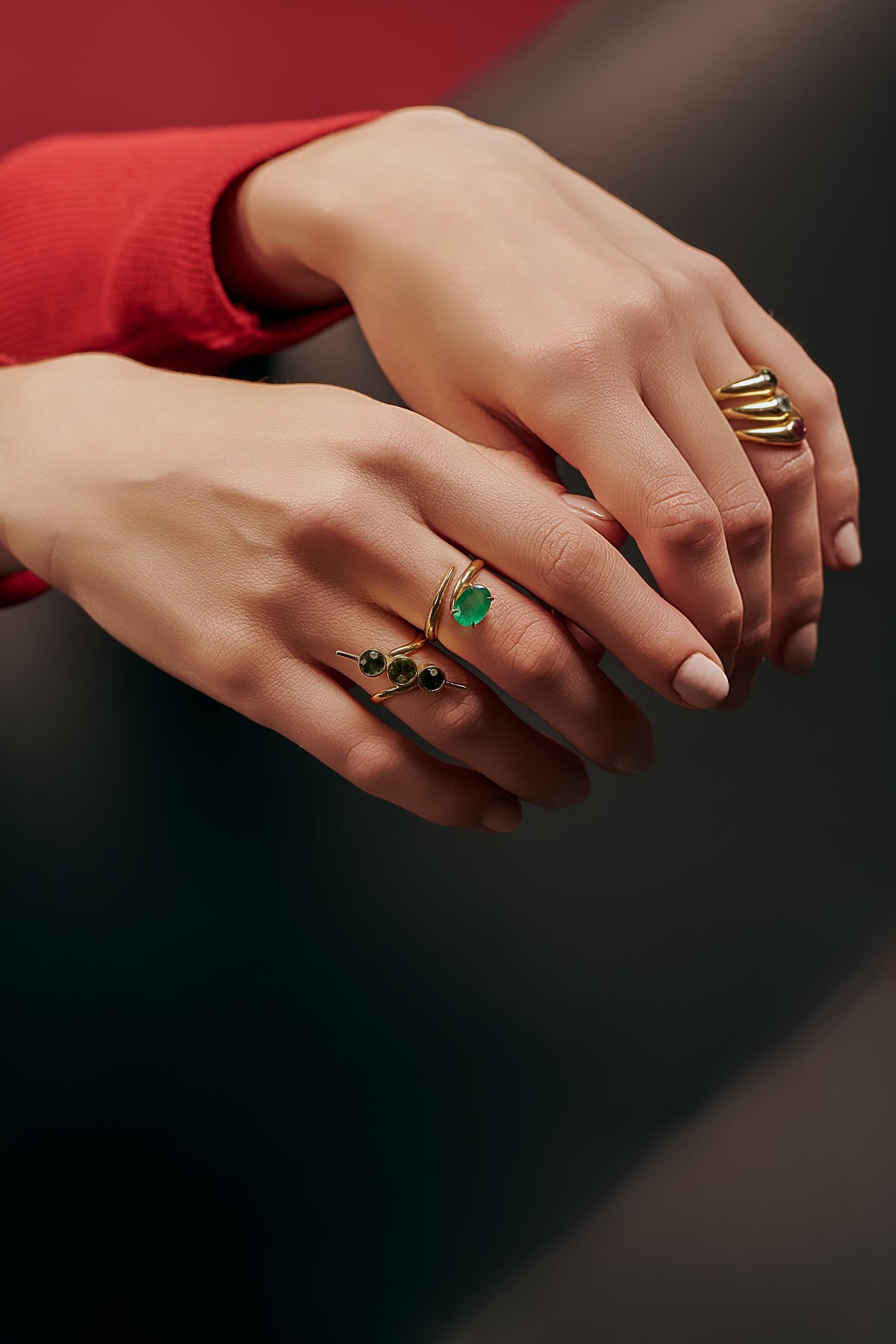 Anel orgânico turmalina verde com 0,7cts. Ouro 18k.