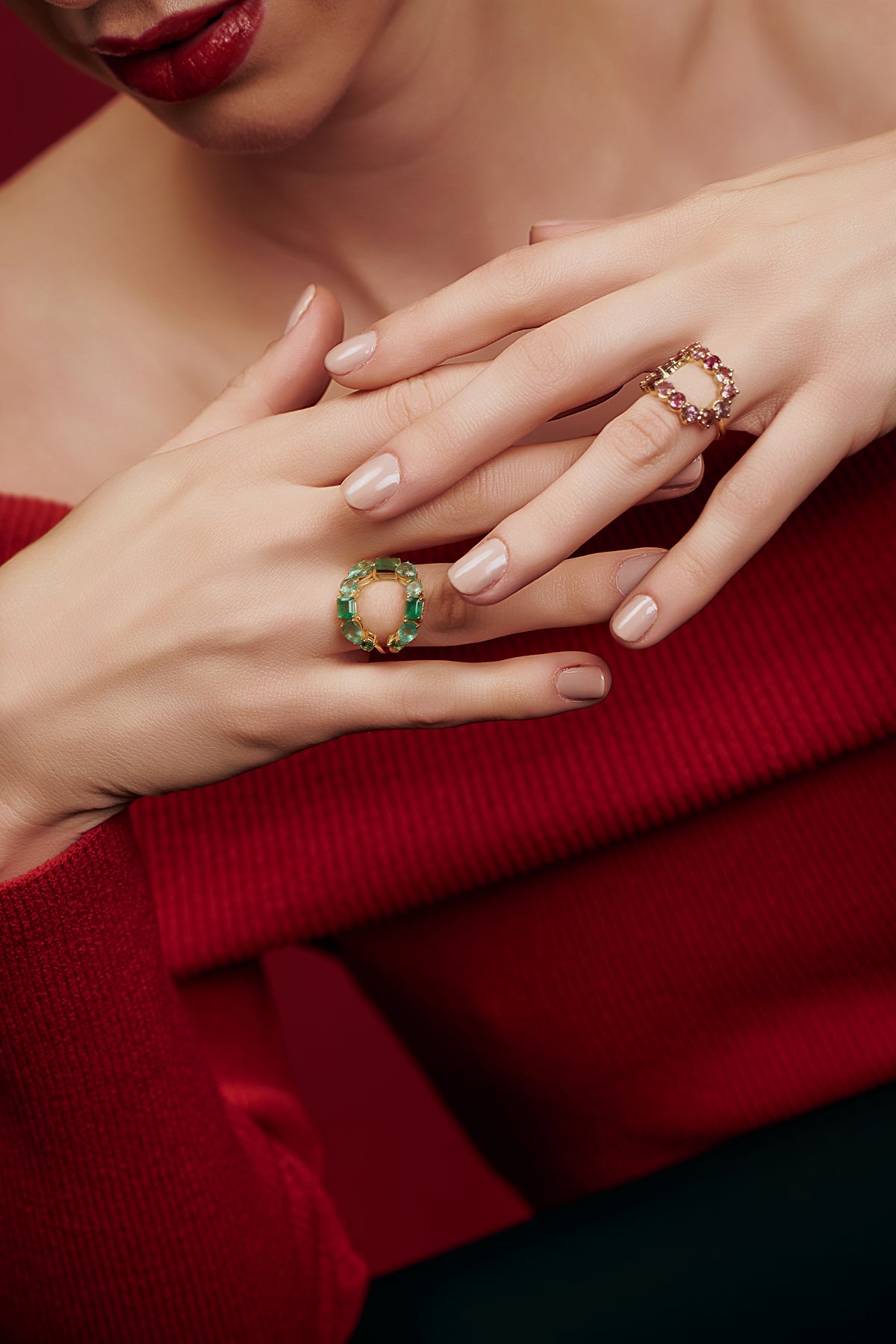 Anel modelo Moon com turmalinas rosas. Ouro 18k.