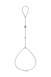 Pulseira de mão, modelo Kira, em ouro 18k. Diamantes naturais, aproximadamente 0,18cts total. Esmeralda central lapidação gota, aproximadamente 0,35cts total.